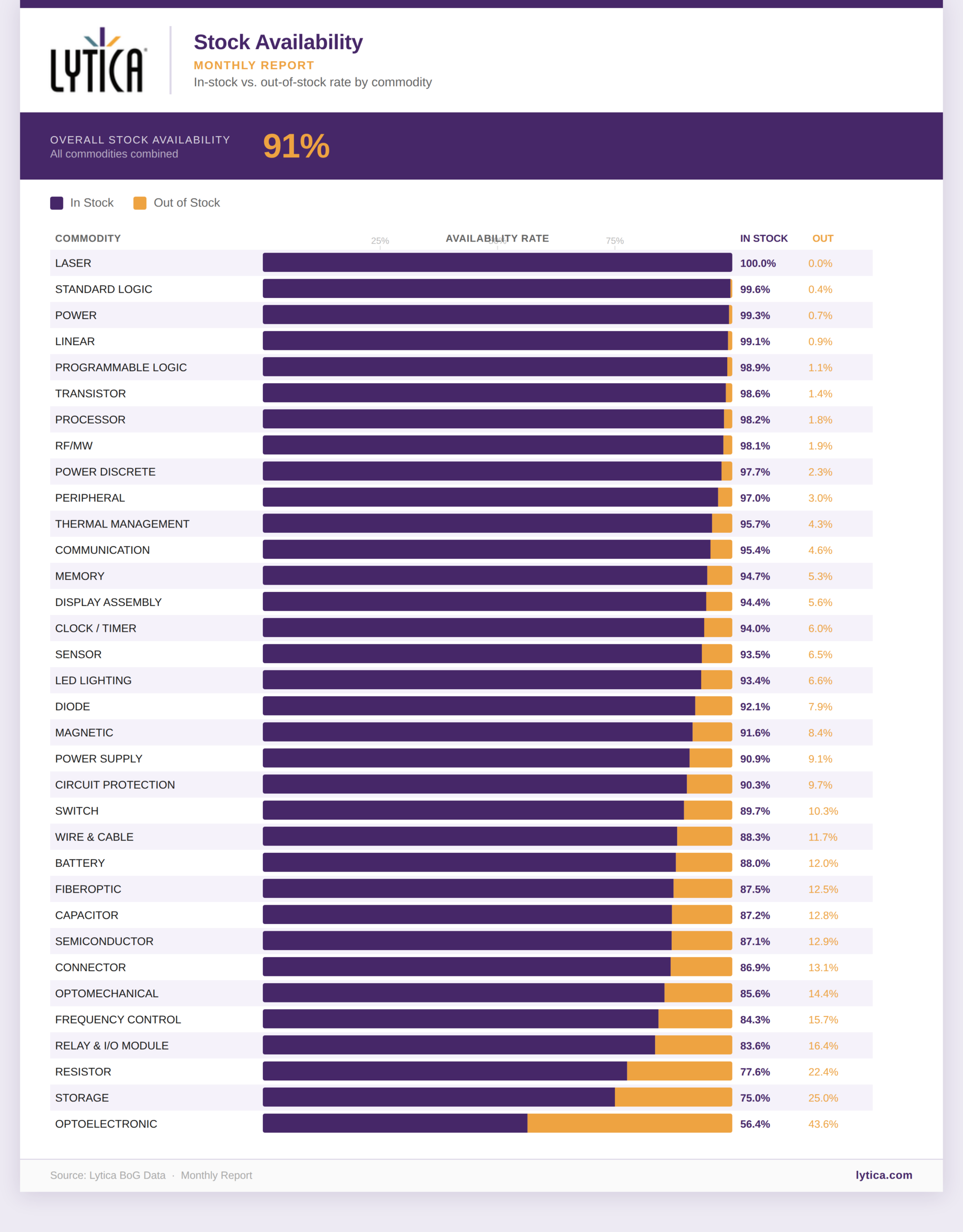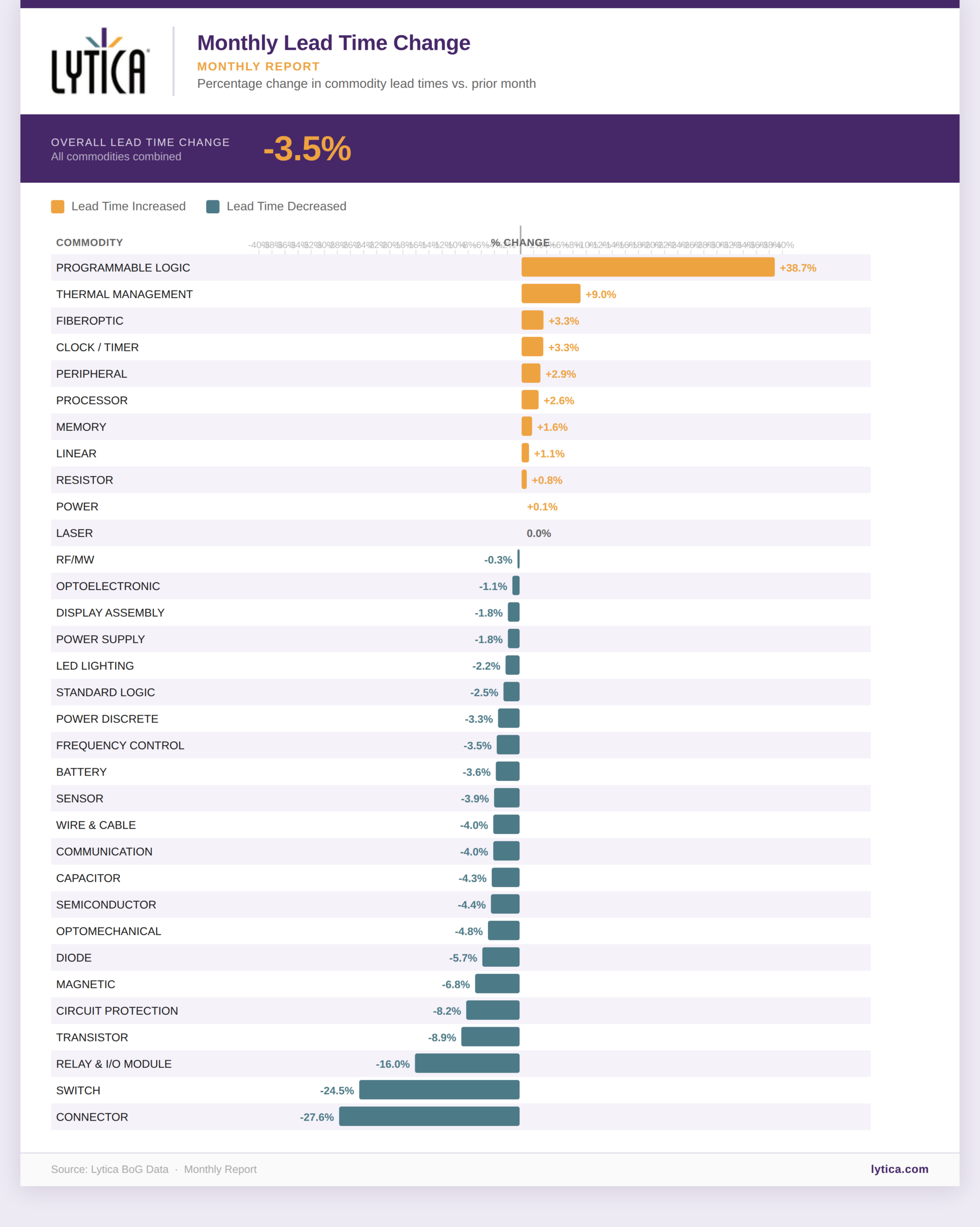 Lytica is the world’s only provider of electronic component spend analytics and risk intelligence using real customer data. As a result of our unique position in the marketplace, we’ve been able to work with 100+ customers in analyzing over $550 billion in electronics spend. We curate up-to-date insights on the state of the electronic component market and share them here with you each month. Subscribe today to receive these each month upon release.